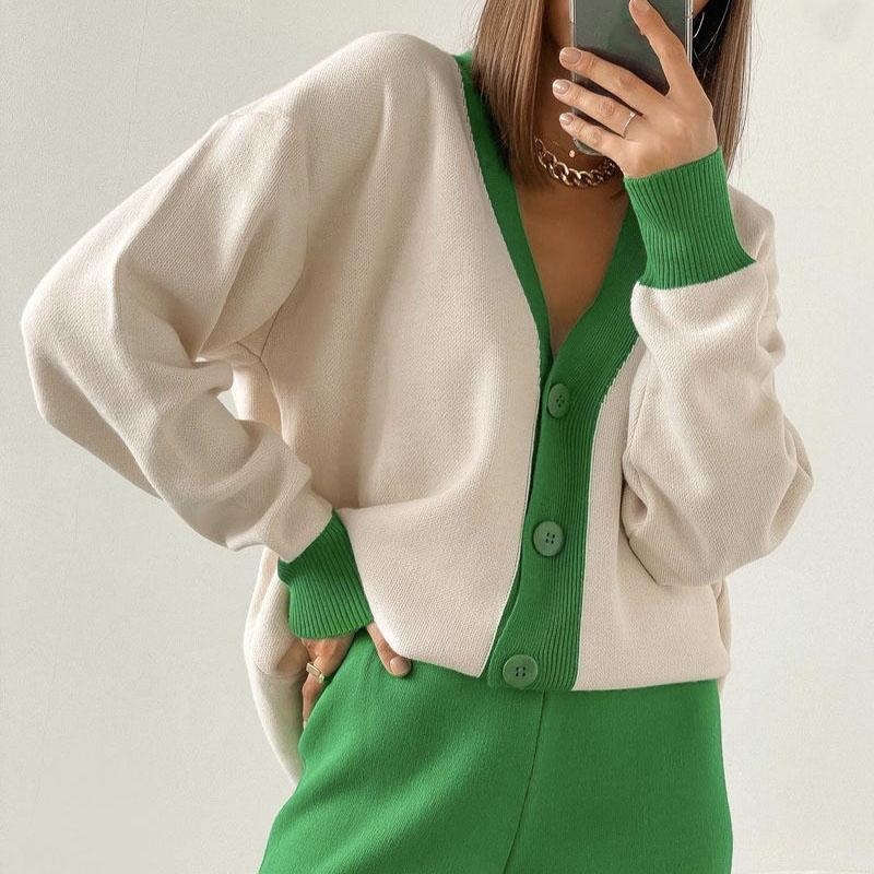 Hirsionsan простой однобортный мягкий вязаный кардиган женский повседневный лоскутный свитер с v-образным вырезом женские свободные элегантные топы с длинными рукавами One Size бежевый