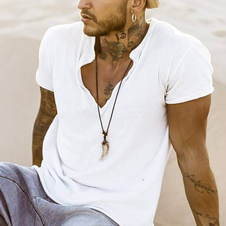 henleys,holiday solid color v-neck casual breathable t-shirt