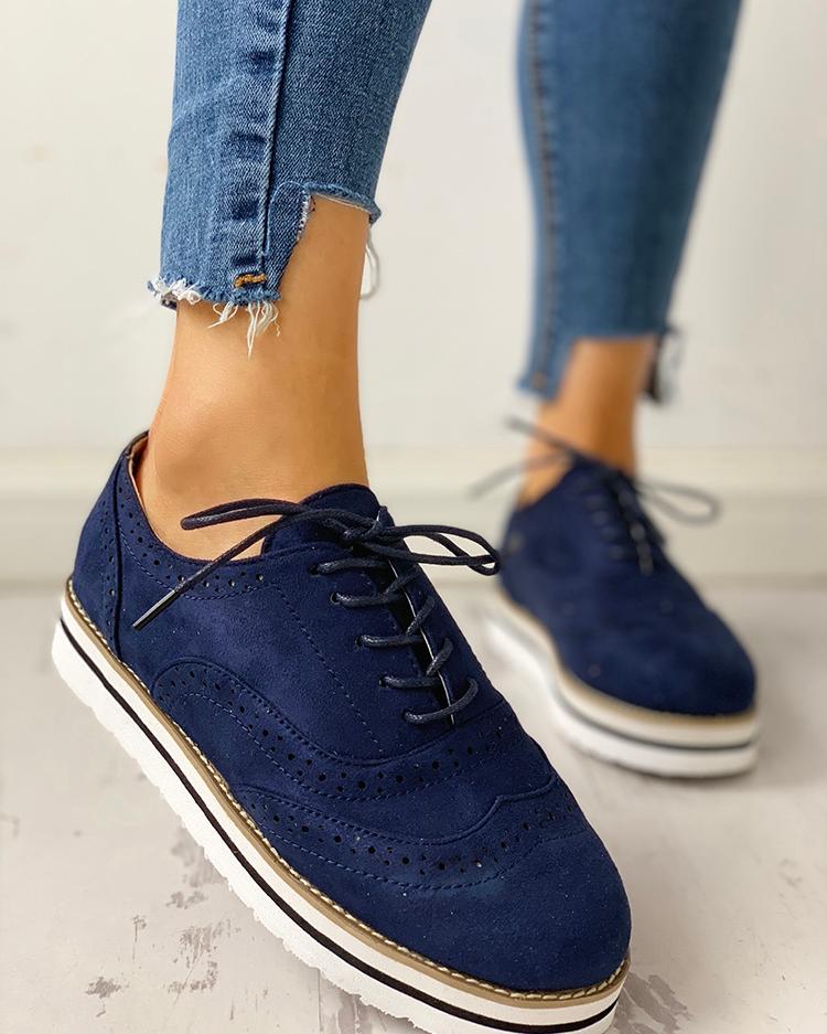 Hollow Out Pattern Lace-up Platform Shoes, Blue