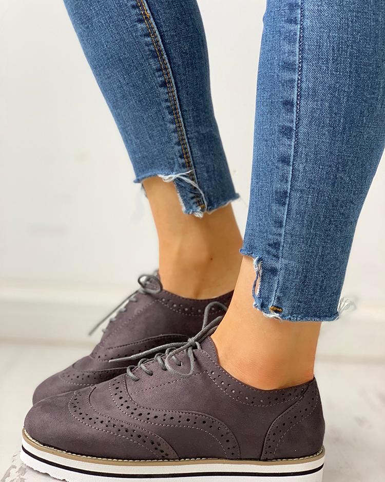 Hollow Out Pattern Lace-up Platform Shoes, Gray
