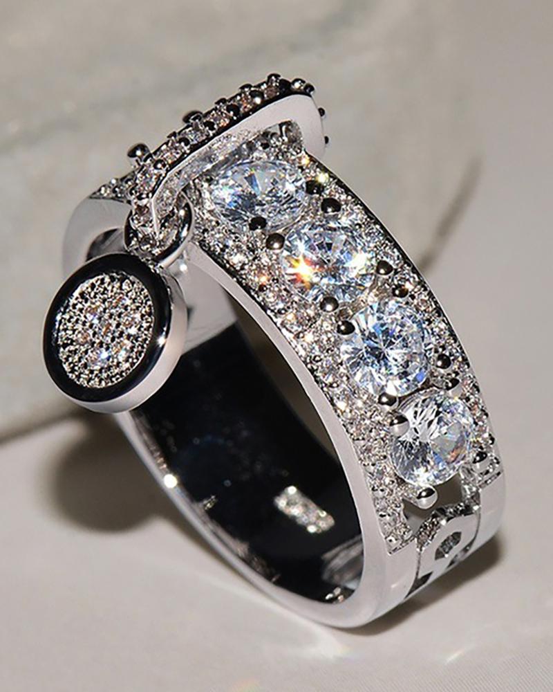 Hollow Out Rhinestone Decor Ring, Silver