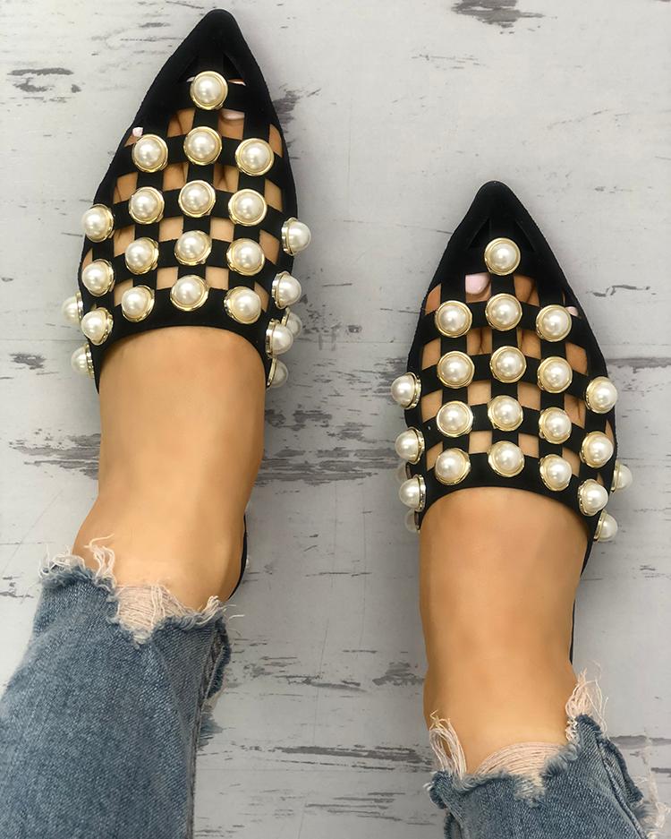 Hollow Out Rivet Embellished Pointed Flats