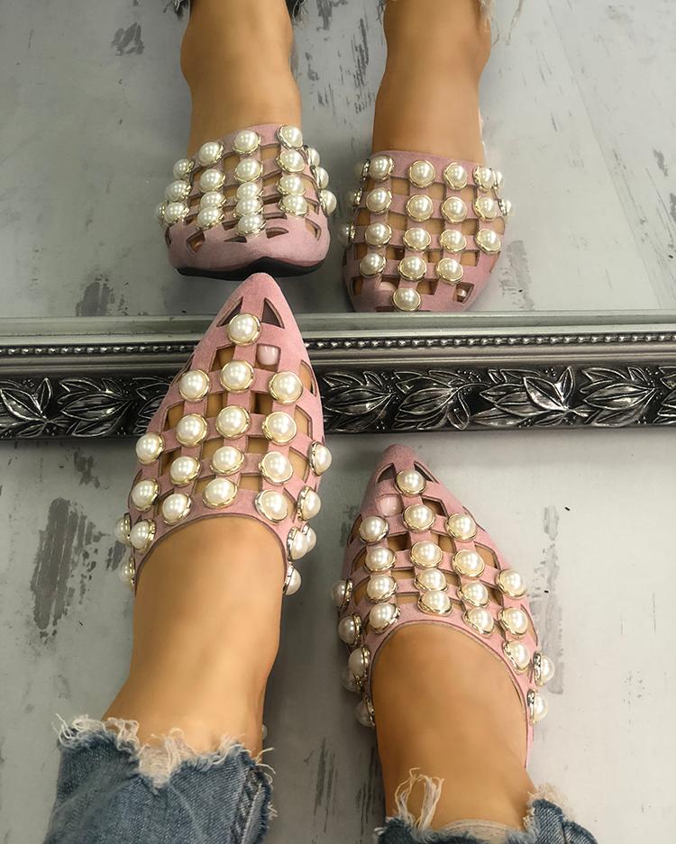 Hollow Out Rivet Embellished Pointed Flats