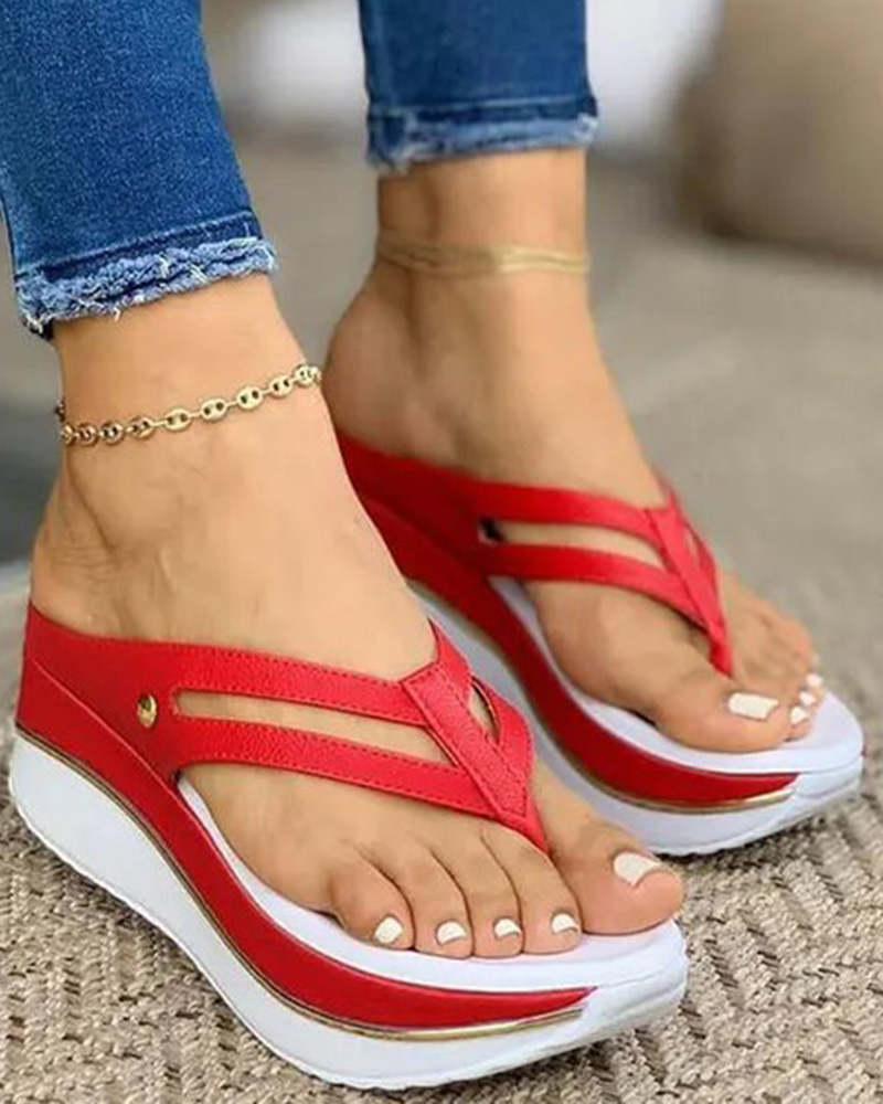 Hollow Out Toe Post Muffin Flip Flops, Red