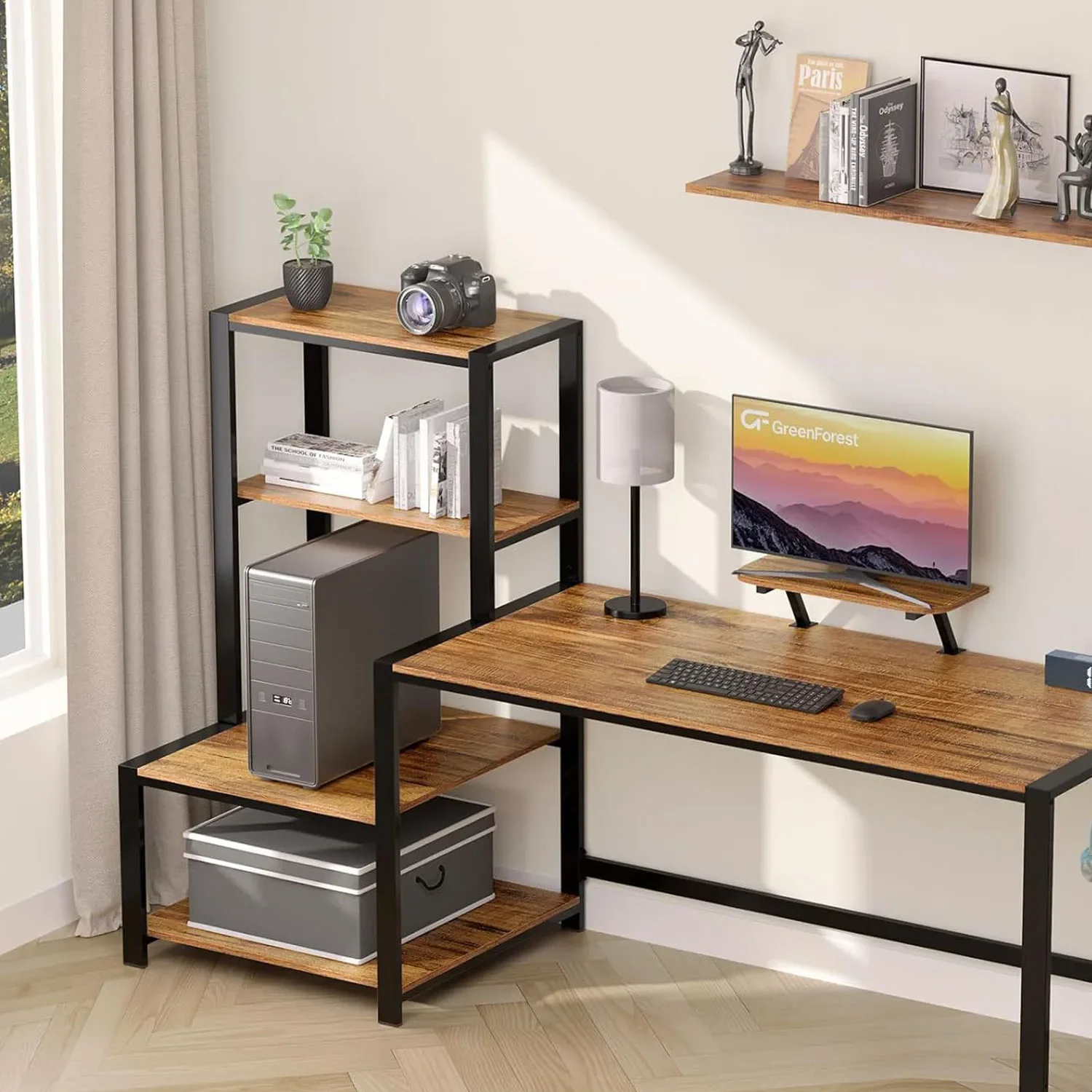 -Home Office Large Study Writing Computer Table Desk With Movable Monitor Stand