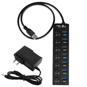 Home Travel With LED Indicator 7 Ports High Speed PC Laptop Extension Plug And Play USB Hub Splitter Office Power Adapter