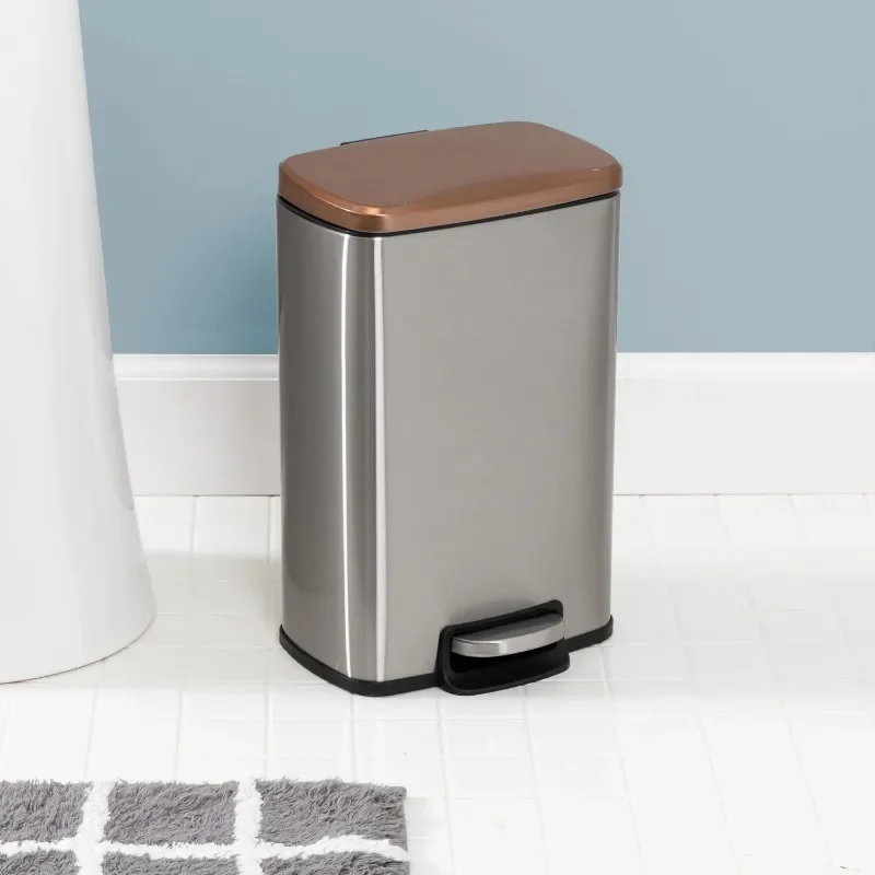 Honey-Can-Do 7,9 галлонов и 1,3 галлонов стальной кухонный и ванной набор мусорных баков, серебристый/розовое золото