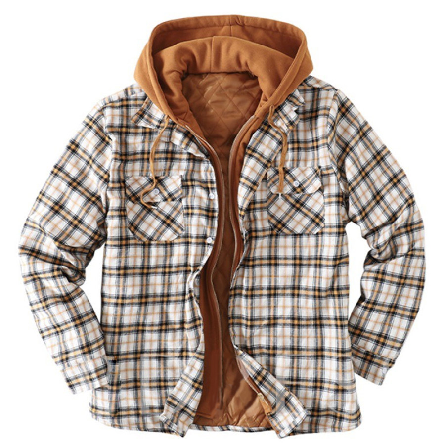 shirt jacs,hooded checkered plus velvet padded brushed jacket