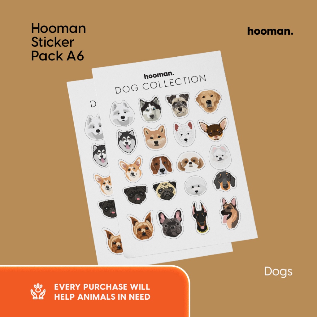 This sticker illustrates Hooman's brand vision and believes where no animal deserves cruelty. The majority of the illustrations are cats and dogs; it is inspired by the places where some of Hooman's profit went: the animal shelter.