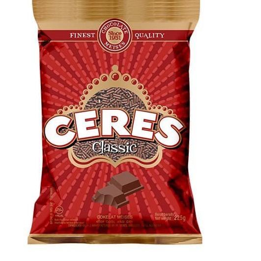 Ceres Meises Classic 200g merupakan butiran cokelat yang dibuat dengan cokelat asli, menjadi meises pilihan utama masyarakat Indonesia.