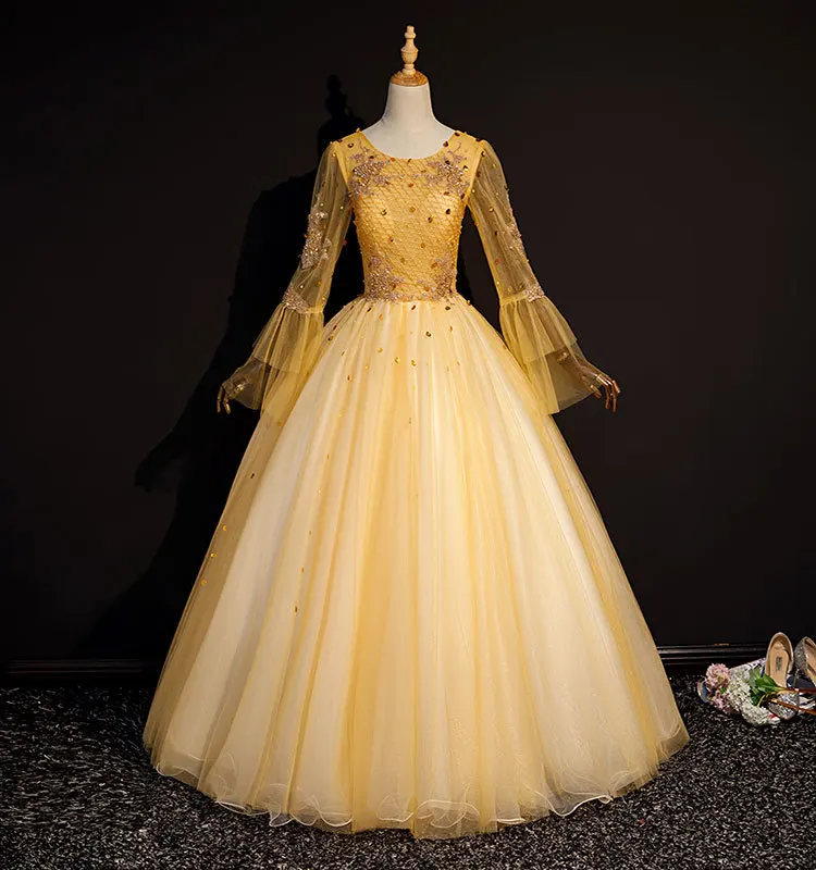 Hot Real Golden Long Flare Sleeve Beading Court Medieval Dress Renaissance Gown Queen Victorian /marie/ Belle Ball/ball Gown