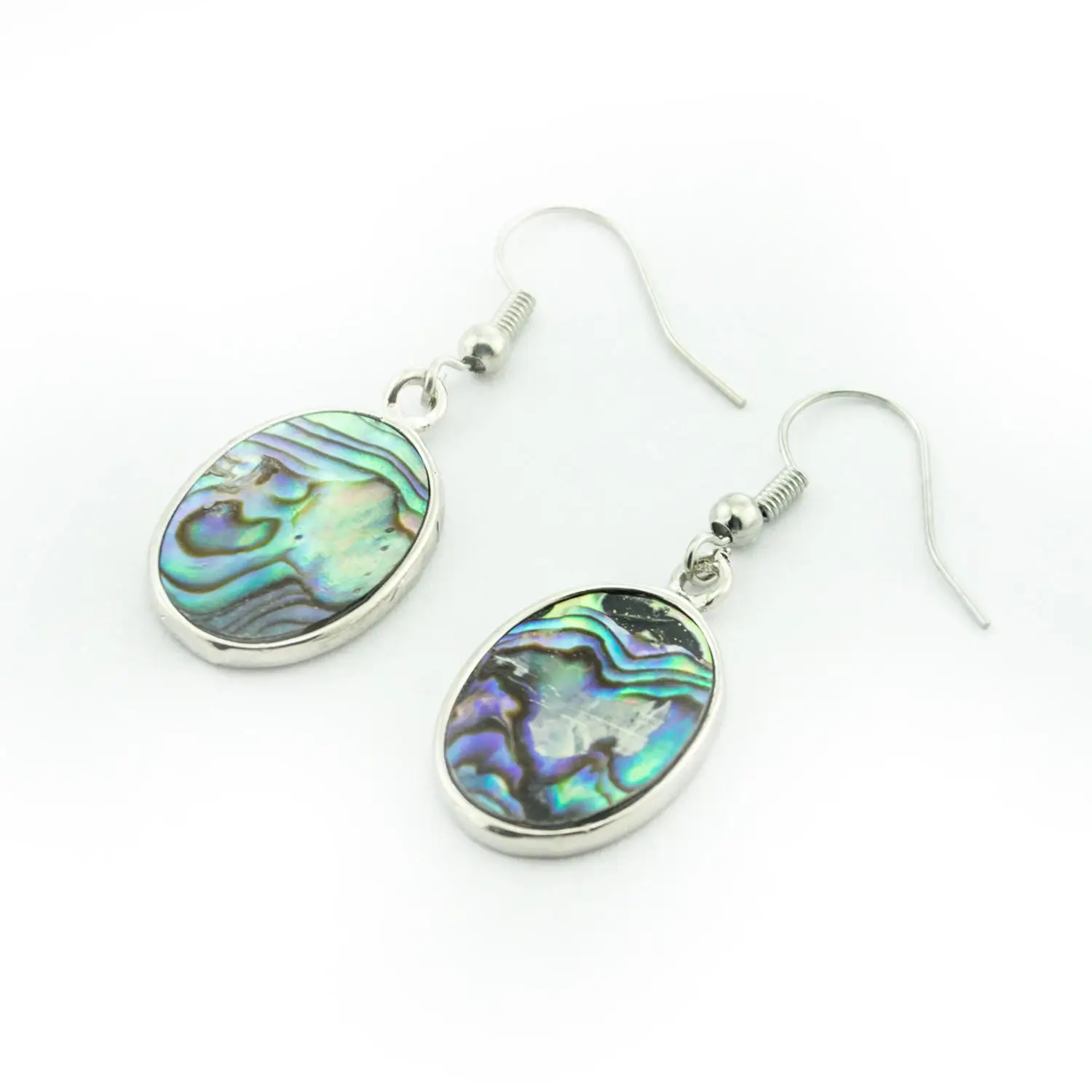 Hot Selling Fashion Abalone Shell Inlay Oval Shaped Dangle Earrings With Silver Edge