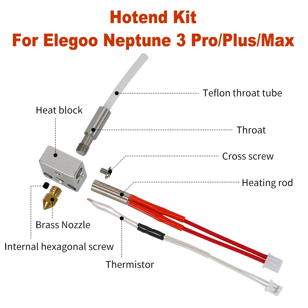 Hotend комплект для Elegoo нептун 3 Pro/Plus/Max Тепловой разрыв, нагревательный элемент, термистор, ПТФЭ трубка для 3D принтера, детали 24V40W
