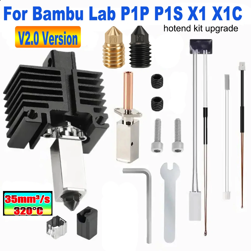 Обновление комплекта Hotend V2.0 для Bambu Lab P1S X1C, аксессуары для 3D-принтеров, насадка из твердой стали для Bambulab Bamboo X1 P1P, комплект Hotend