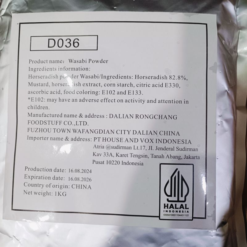 House Wasabi Powder 1Kg / Wasabi Bubuk Halal MUI