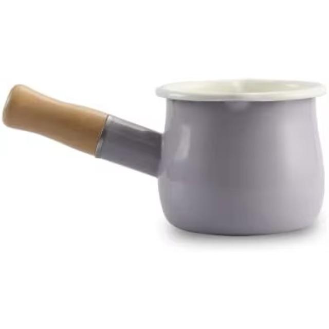 Huanfa 0.6qt Classic Mini Enamel Milk Pot с изолированной деревянной ручкой и 2 носиками для разлива пищи, симпатичная кастрюля (HF015 Белый) 500ML фиолетовый