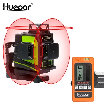 Huepar 12 Lines 3D Red Beam Cross Line Laser Level Self-Leveling 360 Degree Vertical & Horizontal with LCD Receiver USB Charging