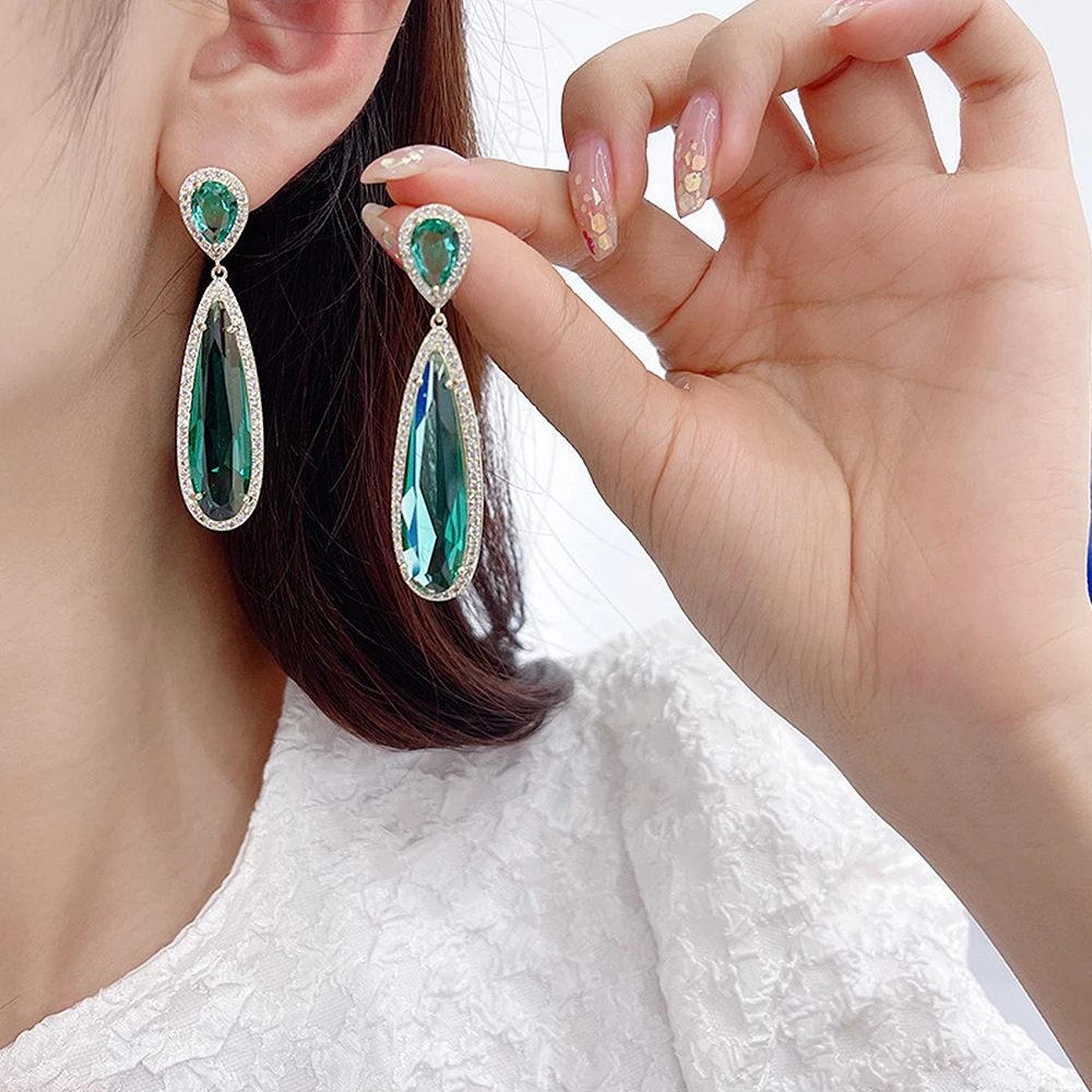 Huitan зеленые/фиолетовые серьги из искусственной кожи с фианитами для женщин темпераментные элегантные женские Висячие серьги Свадебные юве...