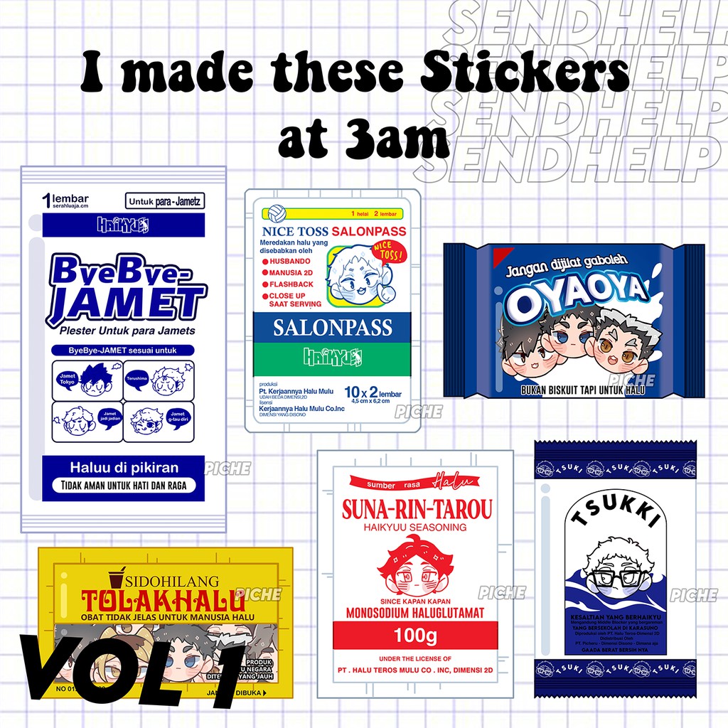 I made these Stickers at 3am, Send Help (Sticker set)
