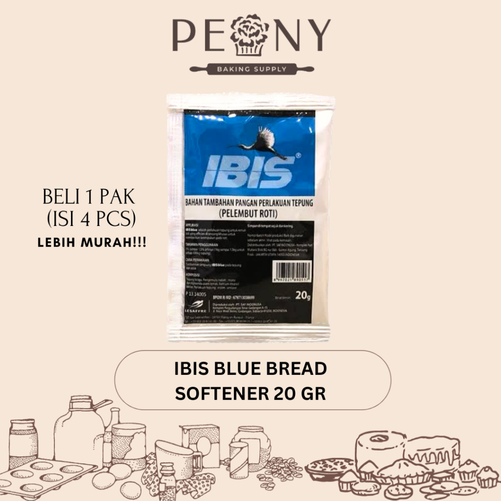 Gunakan IBIS® Blue sebagai tambahan dari pengembang roti yang biasa Anda gunakan. Dapat dicampur langsung dengan tepung terigu.