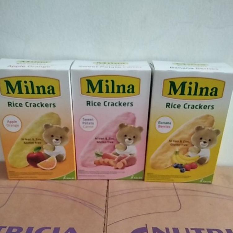 milna rice crackers mudah d genggam teksturnya lembut dan cepet lumer di mulut
