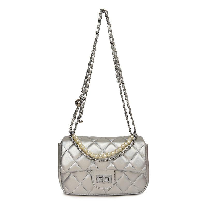 IELGY Женская сумка Tide корейской версии на одно плечо, универсальная, модная, с ромбовидной цепочкой, серебристая, большая вместимость