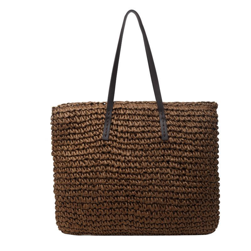 IELGY Модная соломенная сумка большой вместимости, пляжная сумка, повседневная сумка через плечо для отдыха. кофейный