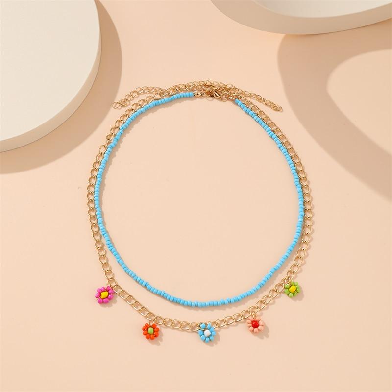 IF ME 2 шт. богемные разноцветные цепочки из бисера, ожерелья для женщин, металлическая цепочка в стиле бохо золотого цвета, бусины ручной работы, ожерелье с цветком, ювелирные изделия NS54066