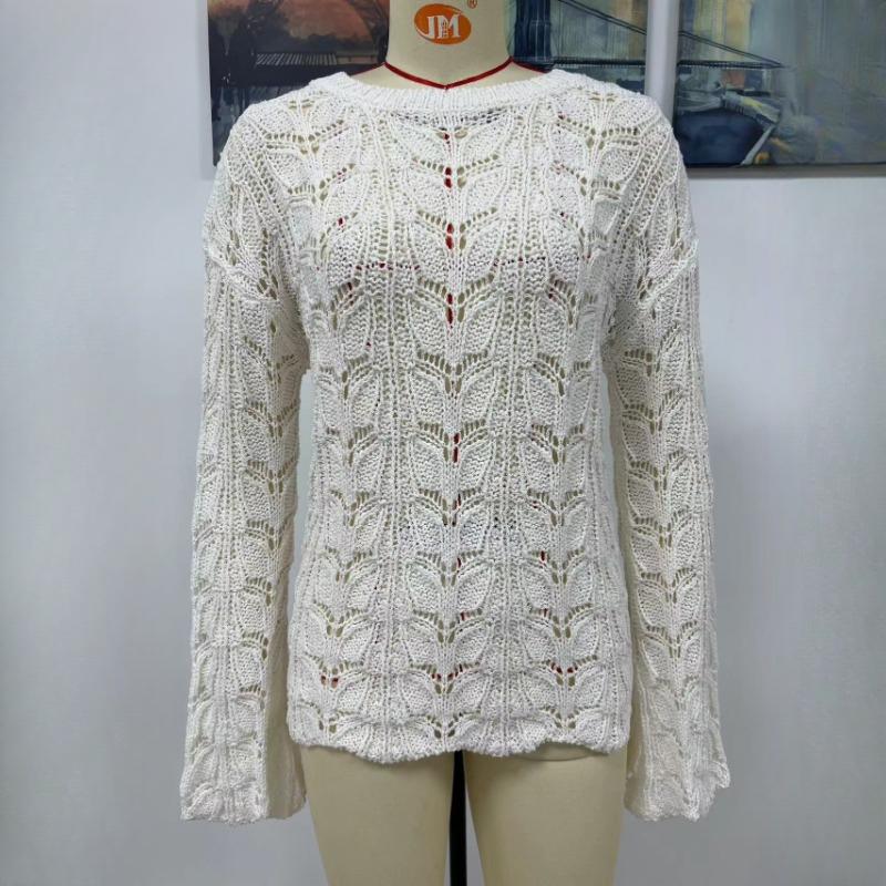 IHUASU Женский осенне-зимний вязаный однотонный свитер с открытыми петлями и круглым вырезом, свободный свитер XL белый