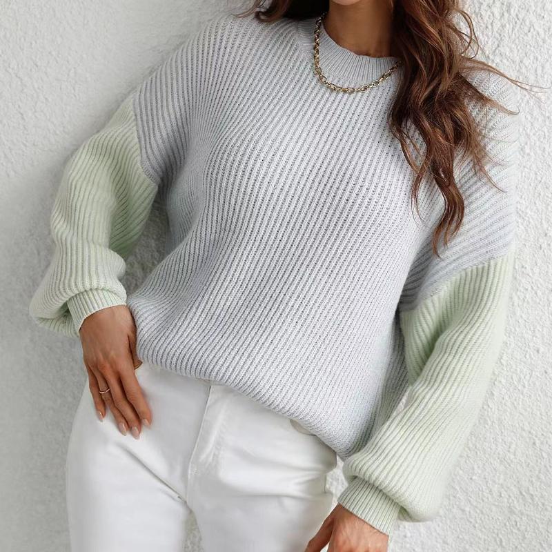 IHUASU Женский осенне-зимний вязаный свитер с круглым вырезом, длинный рукав, полосатый, свободный, большого размера XL светло-серый