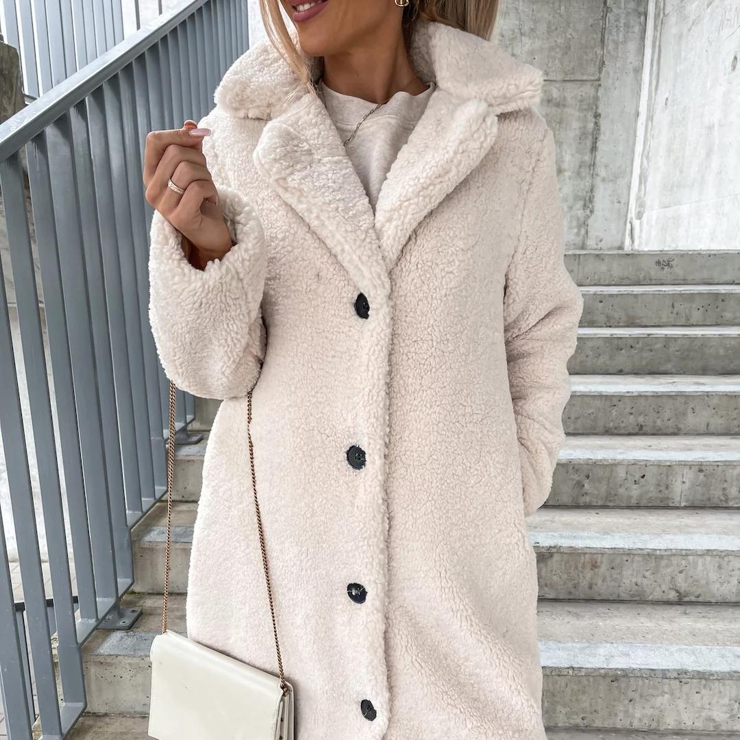 IHUASU осенне-зимнее женское меховое пальто с длинными рукавами и лацканами, женское плюшевое верхнее пальто S абрикосовый
