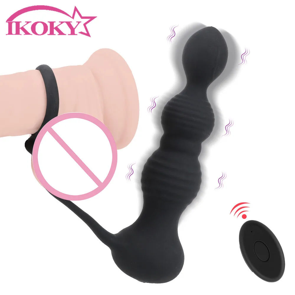 IKOKY Анальный вибратор 10 режимов массаж простаты эротический двойное кольцо Pull Beads секс-игрушки для мужчин женщин мужчин Задержка эякуляции ...