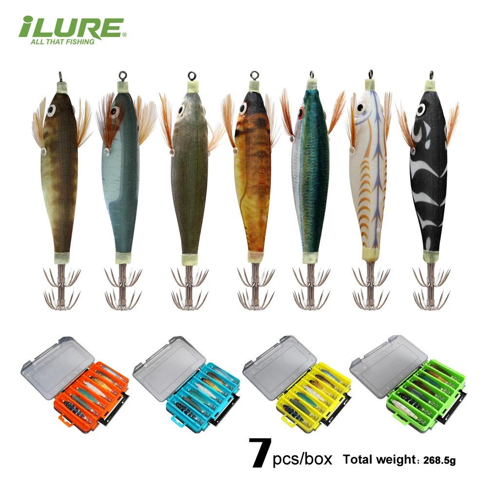ILURE 7 шт./компл. крючки для кальмара светящиеся в коробке деревянные Креветки рыболовная приманка 10 см крючок для кальмара шлёнки стандартная рыболовная приманка