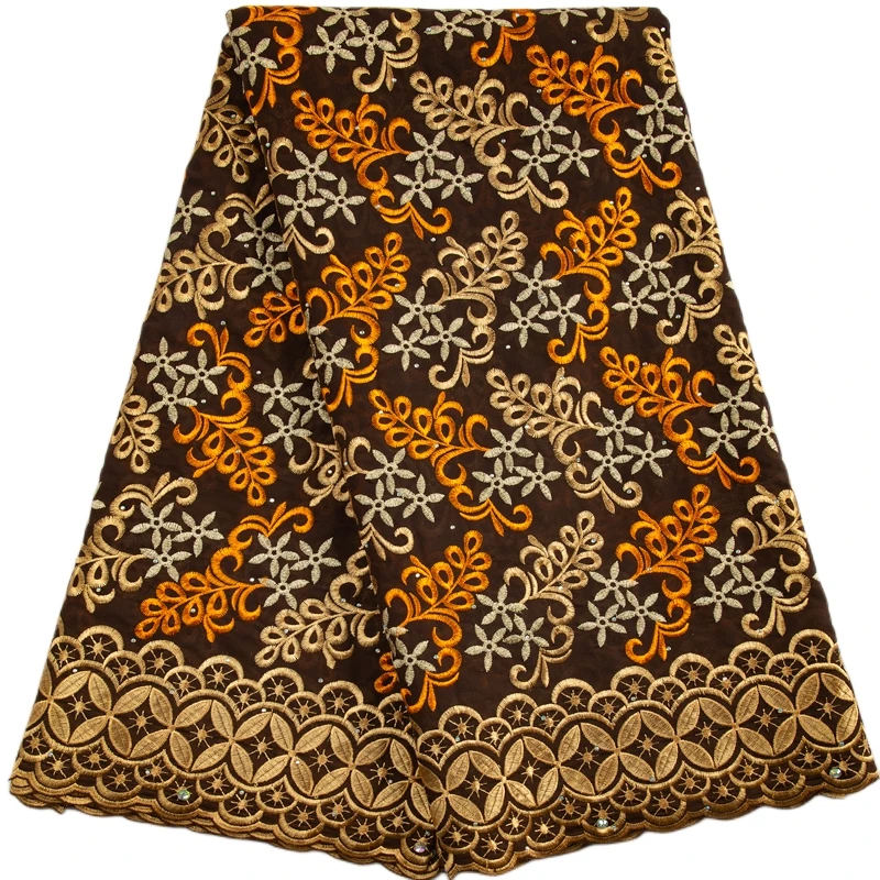 Luxury African Swiss Volie Lace Fabric 5 Yards 2023 Nigerian Cotton Lace with Stones for Sewing Women Wedding Dresses F3354