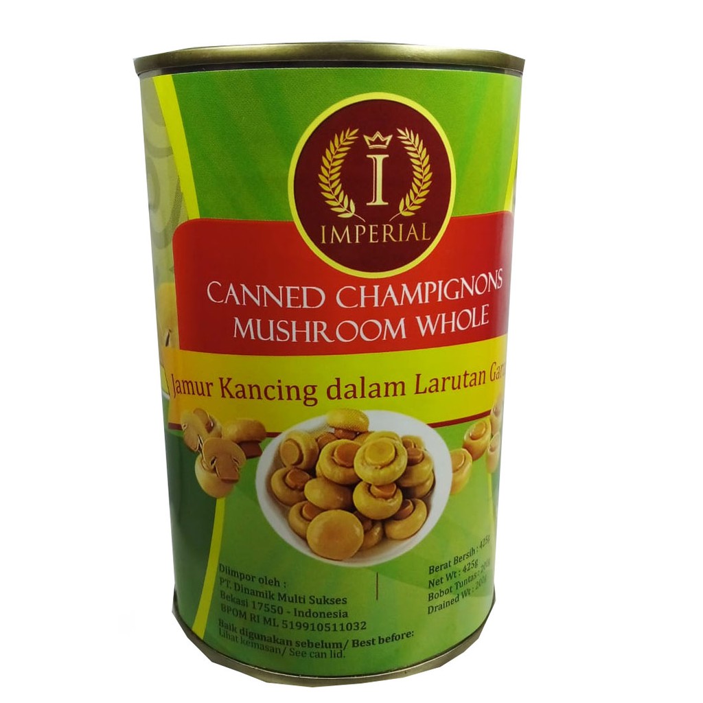 Imperial Canned Champignon Mushrooms adalah jamur kancing utuh dalam larutan garam.