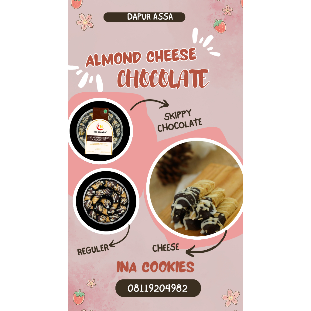 Kukis dengan nikmatnya Almond, manisnya Cokelat dan gurihnya Keju menyatu dalam satu gigitan. Kukis ini dibuat dengan penuh cinta menggunakan resep klasik berbalut dengan cita rasa kekininan dan bahan premium berkualitas, bikin rasa kukis ini selalu melekat dihati.