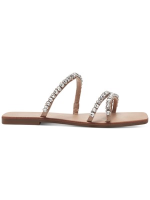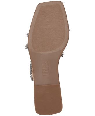 INC Женские бежевые ремешки Gem Pommona Square Toe Block Heel Slip On Sandals, Бежевый, 10014774200
