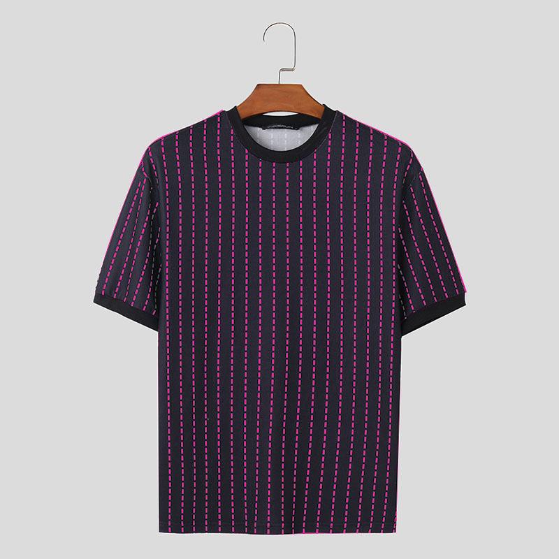 INCERUN Летняя футболка для мужчин с круглым вырезом и короткими рукавами, полосатые топы S розовый