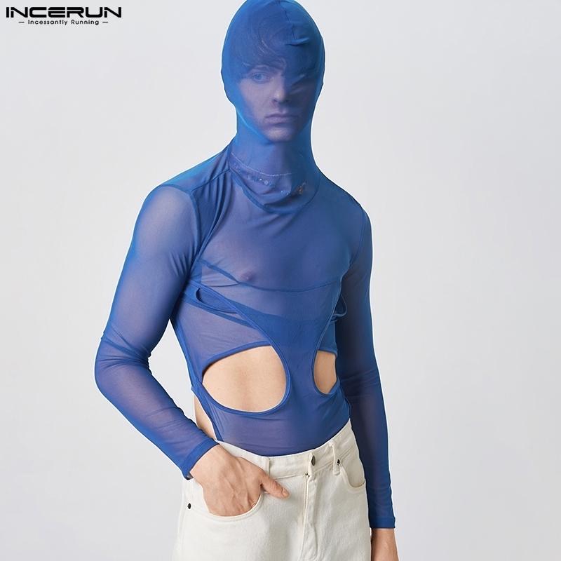 INCERUN Лето Мужчины Боди с длинным рукавом Прозрачный купальник Прозрачная клубная одежда