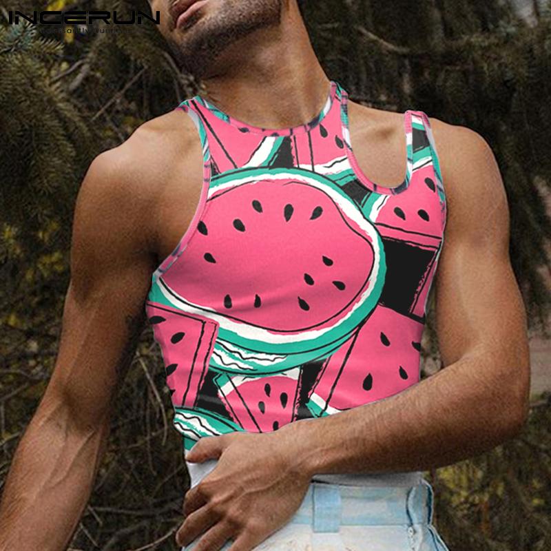 INCERUN Мужские летние пляжные праздничные топы без рукавов с принтом