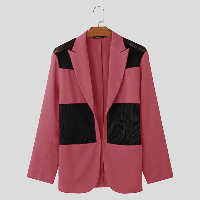 INCERUN Мужской лацкан с длинным рукавом, сетчатый прозрачный тонкий блейзер в стиле пэчворк, прозрачное пальто для вечеринок 5XL розовый