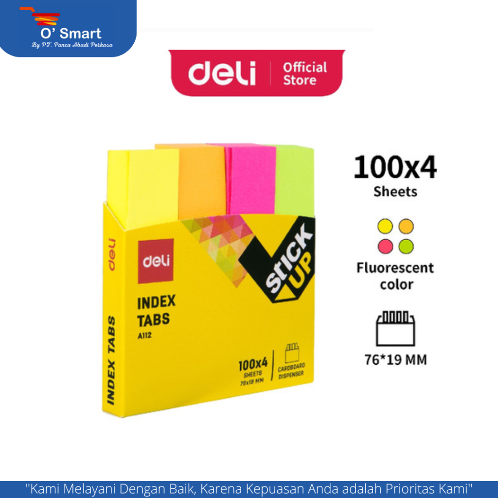Deli EA11202 Index Tabs/Memo Indeks - Paper Index Tabs 76×19mm 4×100sheets 4 Neon Color