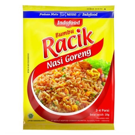 Indofood Bumbu Racik Nasi Goreng adalah salah satu bumbu instan yang dipersembahkan oleh Indofood untuk nasi goreng yang lezat dan nikmat Bumbu Indofood ini diracik dari perpaduan bumbu dan rempah alami