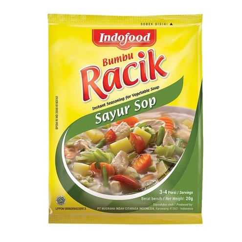 Bumbu Racik Indofood Sayur Sop terbuat dari bumbu dan rempah asli yang akan membuat sayur sop Anda tambah nikmat. Penggunaannya praktis, cepat, dan dapat dibawa kemanapun. Keunggulan :