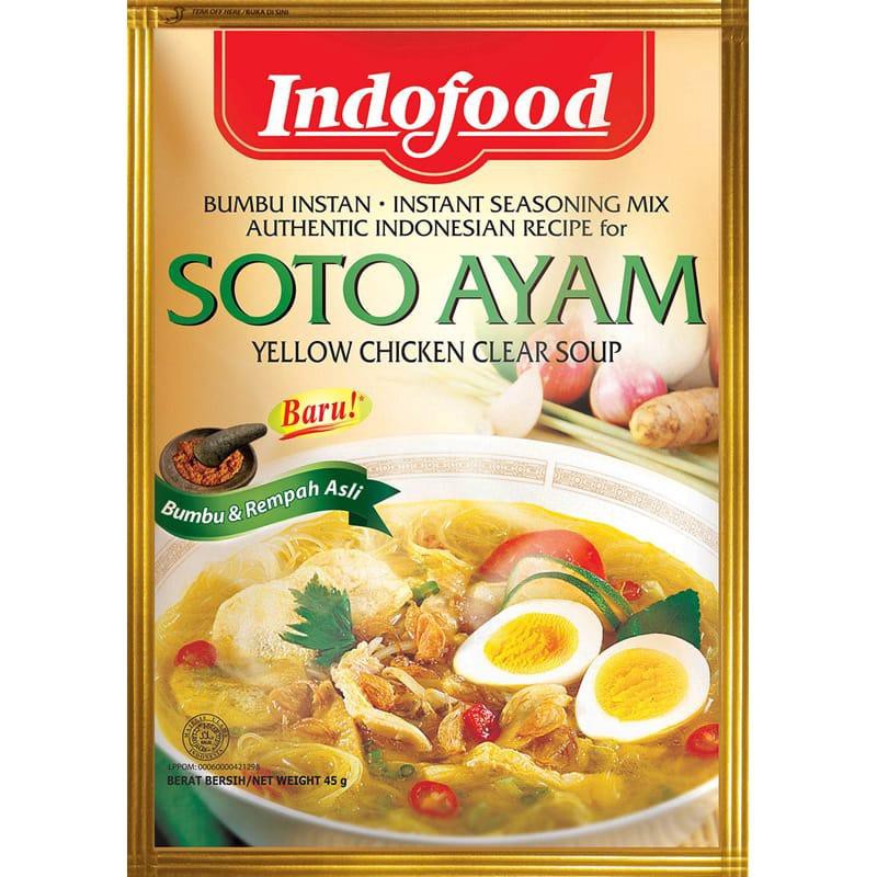 Indofood Bumbu Instan Soto adalah salah satu bumbu instan yang dipersembahkan oleh Indofood untuk soto ayam yang lezat dan nikmat. Bumbu Indofood ini diracik dari perpaduan bumbu dan rempah-rempah alami yang segar. Perpaduan tersebut dihasilkan dari pasteurisasi yang menjaga kesegaran rempah. Tanpa dapur yang berantakan dan dengan waktu yang cepat, Anda dapat menyajikan soto ayam yang lebih gurih, sedap, dan nikmat. Bumbu instan ini terjamin aman karena diracik tanpa bahan pengawet dan pewarna, serta mendapatkan sertifikat hahal dari Majelis Ulama Indonesia (MUI). Soto ayam yang biasanya dimasak dengan waktu yang lama kini dapat tersaji dalam beberapa menit saja. Hidangkan soto ayam hangat kesukaan keluarga Anda bersama lezatnya Indofood Bumbu Instan Soto Ayam.
