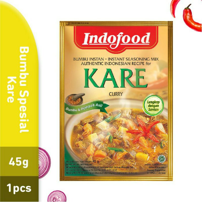 Bumbu Spesial Indofood Kare ini juga dikreasikan dengan bahan-bahan lainnya seperti ayam, telur, ikan dan lainnya.