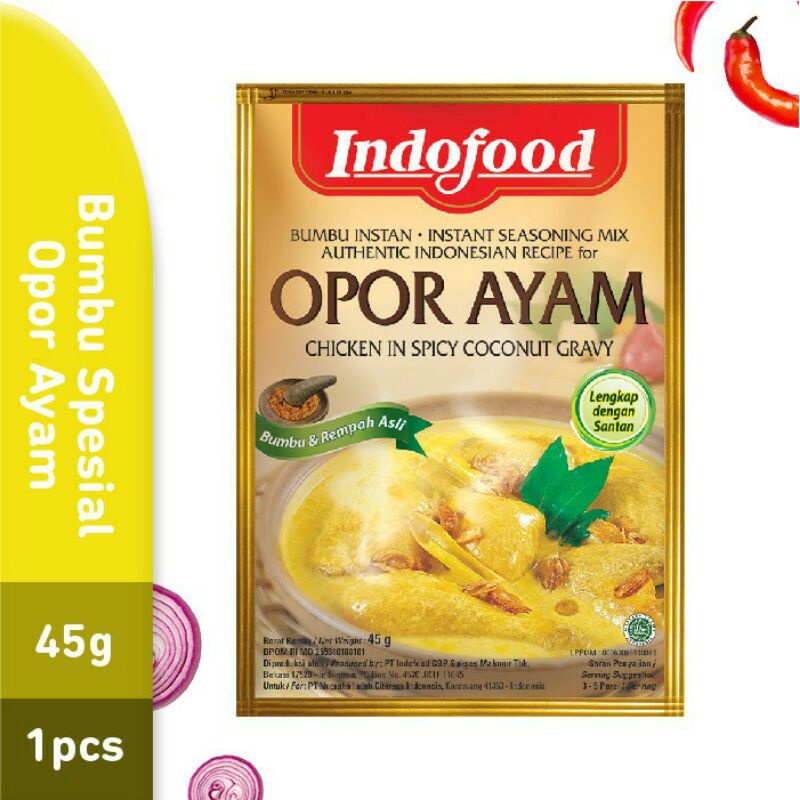 Bumbu Spesial Indofood Opor ini juga dikreasikan dengan bahan-bahan lainnya seperti ayam, telur, tahu, dan lainnya.