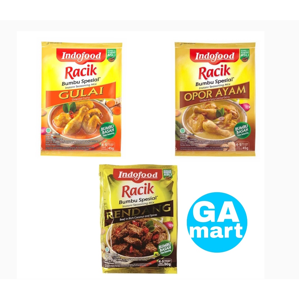 Bumbu Racik dari Indofood dalam bentuk sachetan merupakan bumbu instant yang paling banyak variannya dan rasanya yang persis seperti bumbu racikan sendiri Terbuat dari rempah asli pilihan yang telah dikeringkan, sehingga dapat membuat masakan lebih nikmat dan sedap.