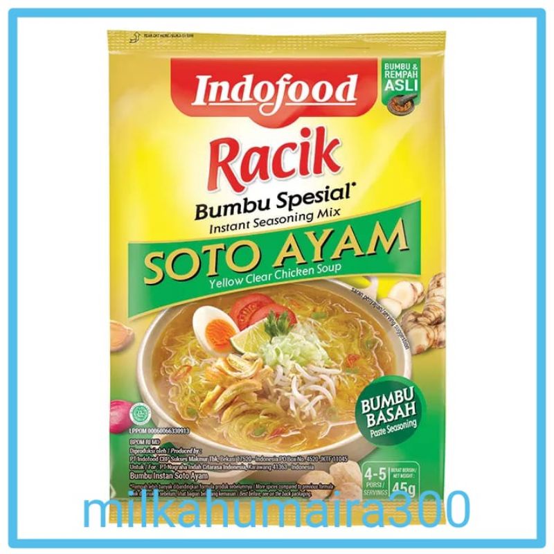 Indofood racik soto ayam ,gulai,kare,rendang,opor ayam,dan rawon.