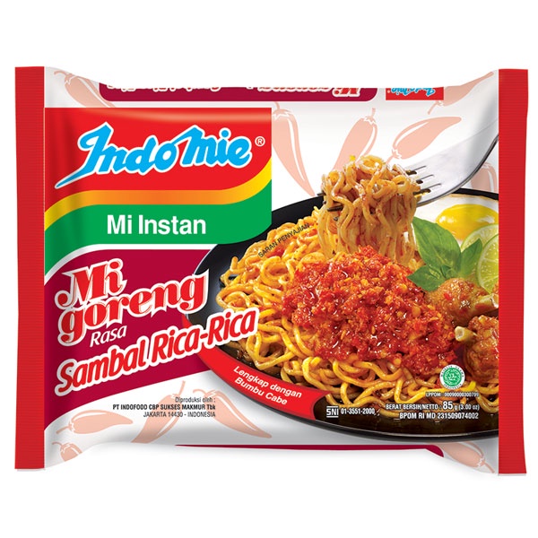 Indomie Goreng Rasa Sambal Rica Produk Mie instant dari Indomie Rasa sambal rica Sajian yang lezat untuk keluarga anda